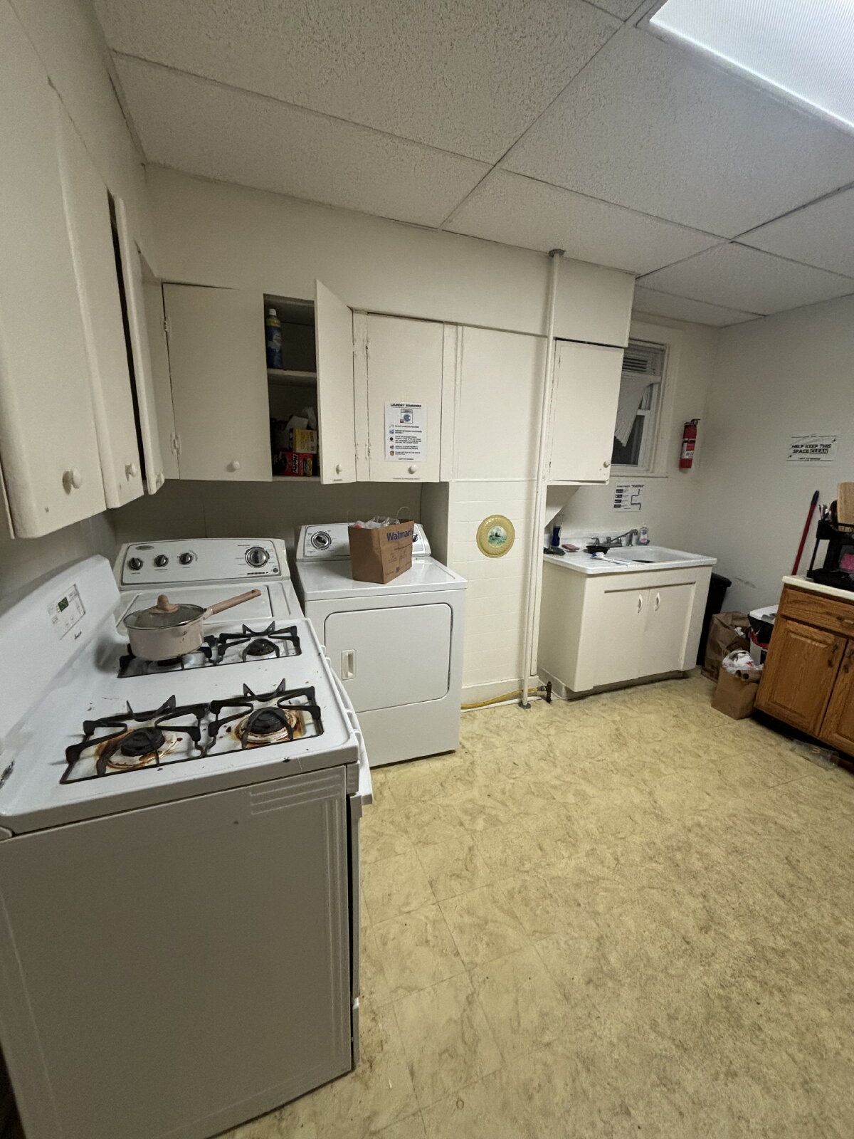 - Full kitchen, large living room, full bathroom, washer/dryer on site